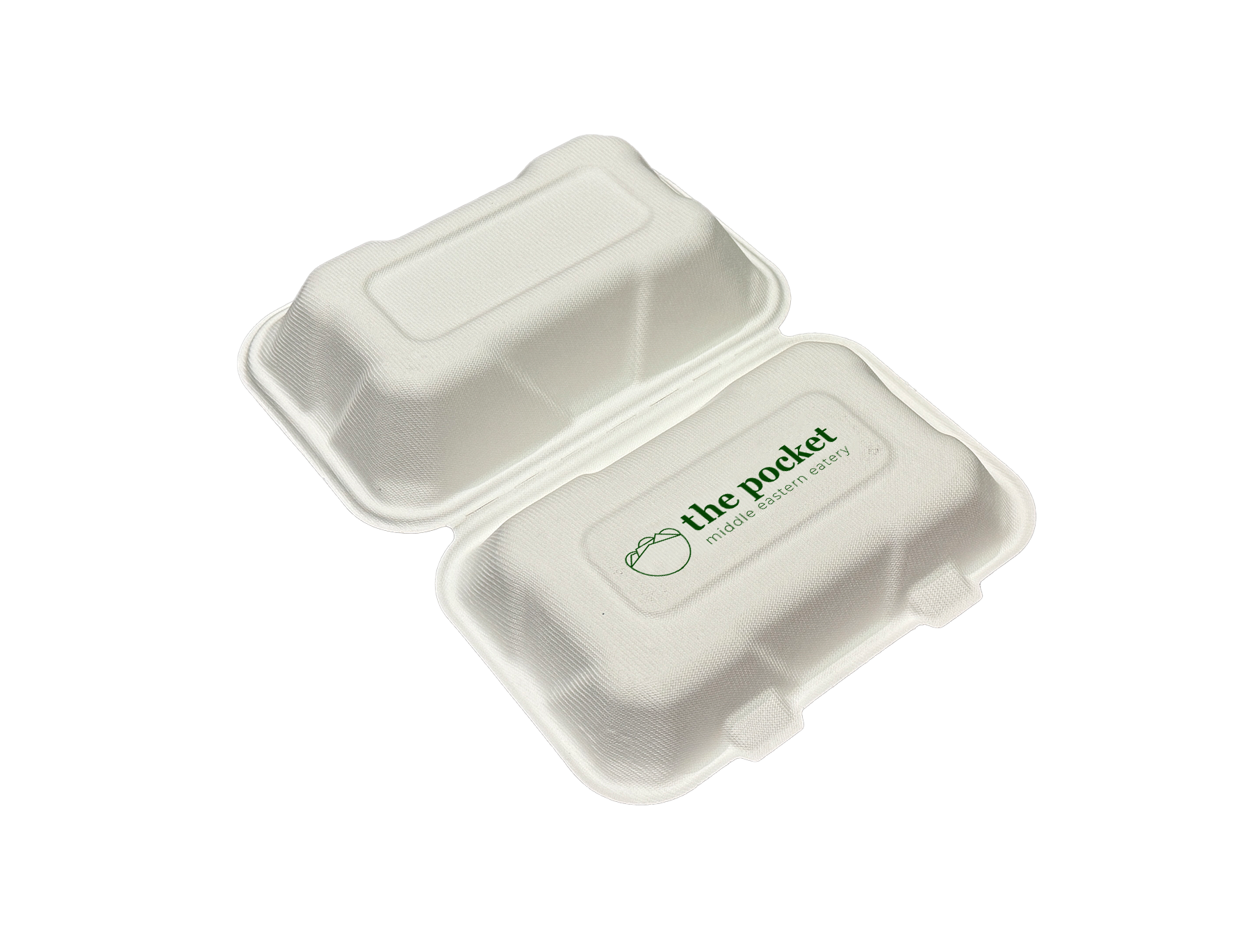 Our custom printed sugarcane clamshell snack boxes are printed locally in Melbourne for fast delivery and premium quality. Logos are printed with CMYK color on the top of the sugarcane box. Printed area 11x4cm.